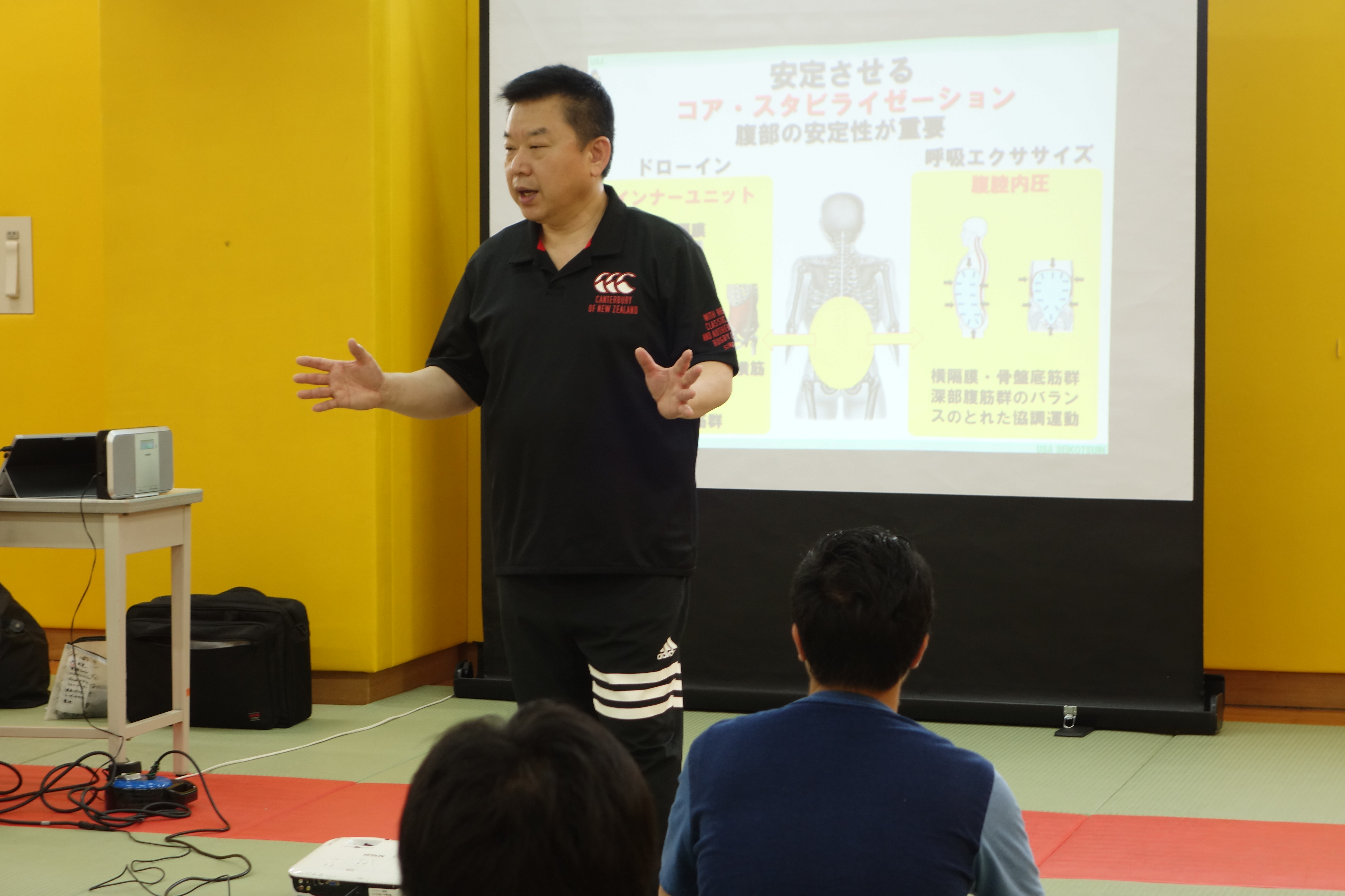 本日は、ストレッチポールとKOBA式チューブトレーニングを実践しながら講義していただきました。
