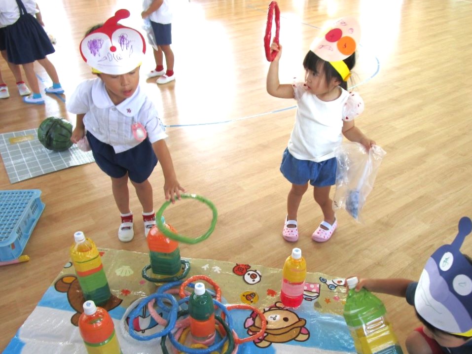 預かり保育とわんぱーくのお友達で夏祭りごっこを楽しみました??