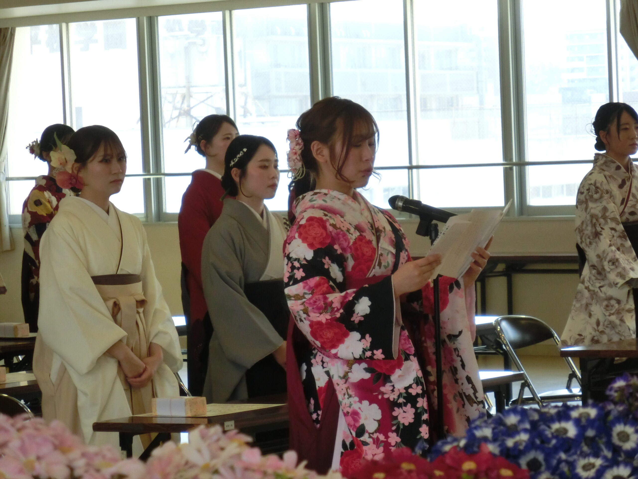 学生生活を振り返りながら語られた言葉には、これまで支えてくれた人への思いと、これから社会へ羽ばたいていく決意が込められており、会場は温かい雰囲気に包まれました。