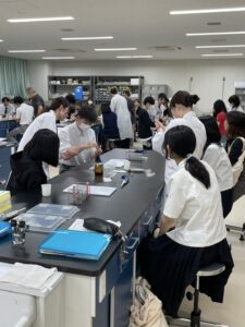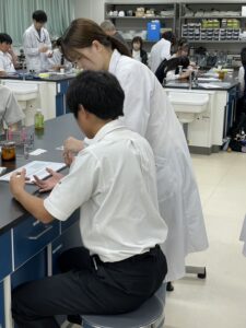 6月の体験は ・微量ピペットを使ってみよう♪ ・血液塗抹標本をつくってみよう♫ を在校生と一緒にしてもらいました