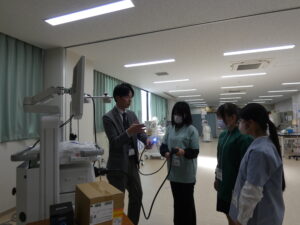 OB/OGから各学科の特色や職業内容を聞いて、そのあとに医療機器を使って実際に医療機器に触れてみました!