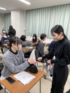 3年生に1・2年生から国家試験合格祈願のお守りを渡しました