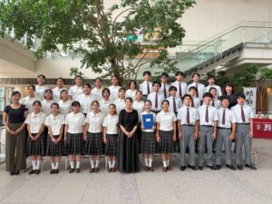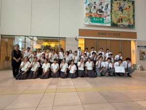 学校での最後の練習では恒例の円陣で気合を入れて会場に出発。結果は、全国大会への推薦こそ逃したものの、見事金賞をいただきました。九州大会での金賞は建学以来2回目で、今回歌った「春」は、3年前に金賞を取った先輩達が歌った曲です。この曲を昨年の秋から練習し始め、詩の意味や作詞者の気持ちを何度も話しあい、どのように歌うかを皆でひたすら考え抜きました。舞台の上での数分間の演奏のために皆が一年以上かけて練習し、その集大成として、本番では今までで一番素晴らしい演奏をすることができました。合唱団のコンクール出場はこれで一段落ではありますが、同じく合唱団が出場したNHK全国音楽コンクール九州・沖縄ブロック大会の模様は、10月4日(土)にNHK(Eテレ)で放送予定です。合唱団の歌声をぜひお聴きください。