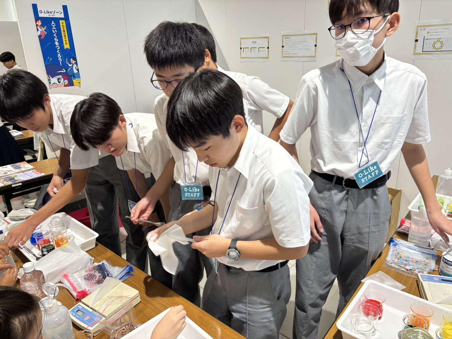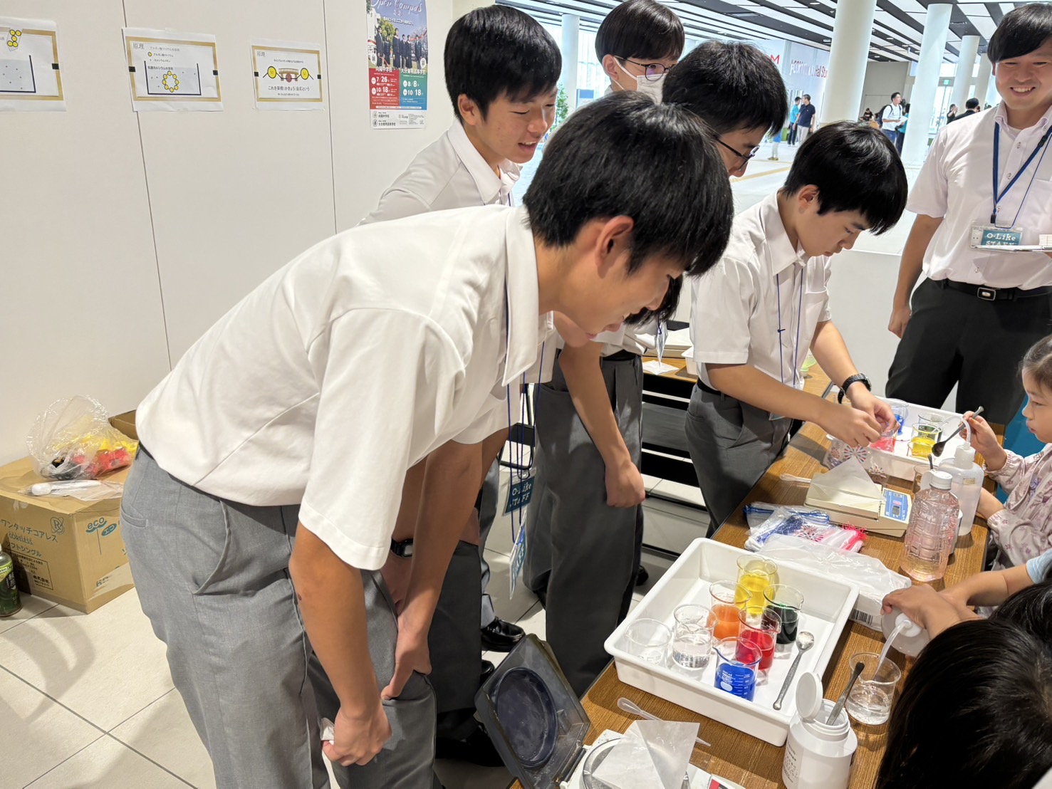 9月20日(土)、本校の生徒11名がJ:COMホルトホール大分で行われた、大分合同新聞社主催の「サイエンスフェス」に参加しました。今年は「人工いくらをつくろう!」というテーマで実験ブースを出展し、来場者の方々に科学の楽しさを伝える活動を行いました。 ブースには小さなお子さんから小学6年生まで、たくさんの方にお越しいただき、大盛況となりました。生徒たちは”先生役”として、来場者にわかりやすく伝えるためにはどうすれば良いかを考え、言葉や説明の工夫を重ねながら活動に取り組みました。 普段の授業とはまた違ったかたちで学びを深める貴重な経験となり、参加した生徒にとっても大きな成長の機会となりました。