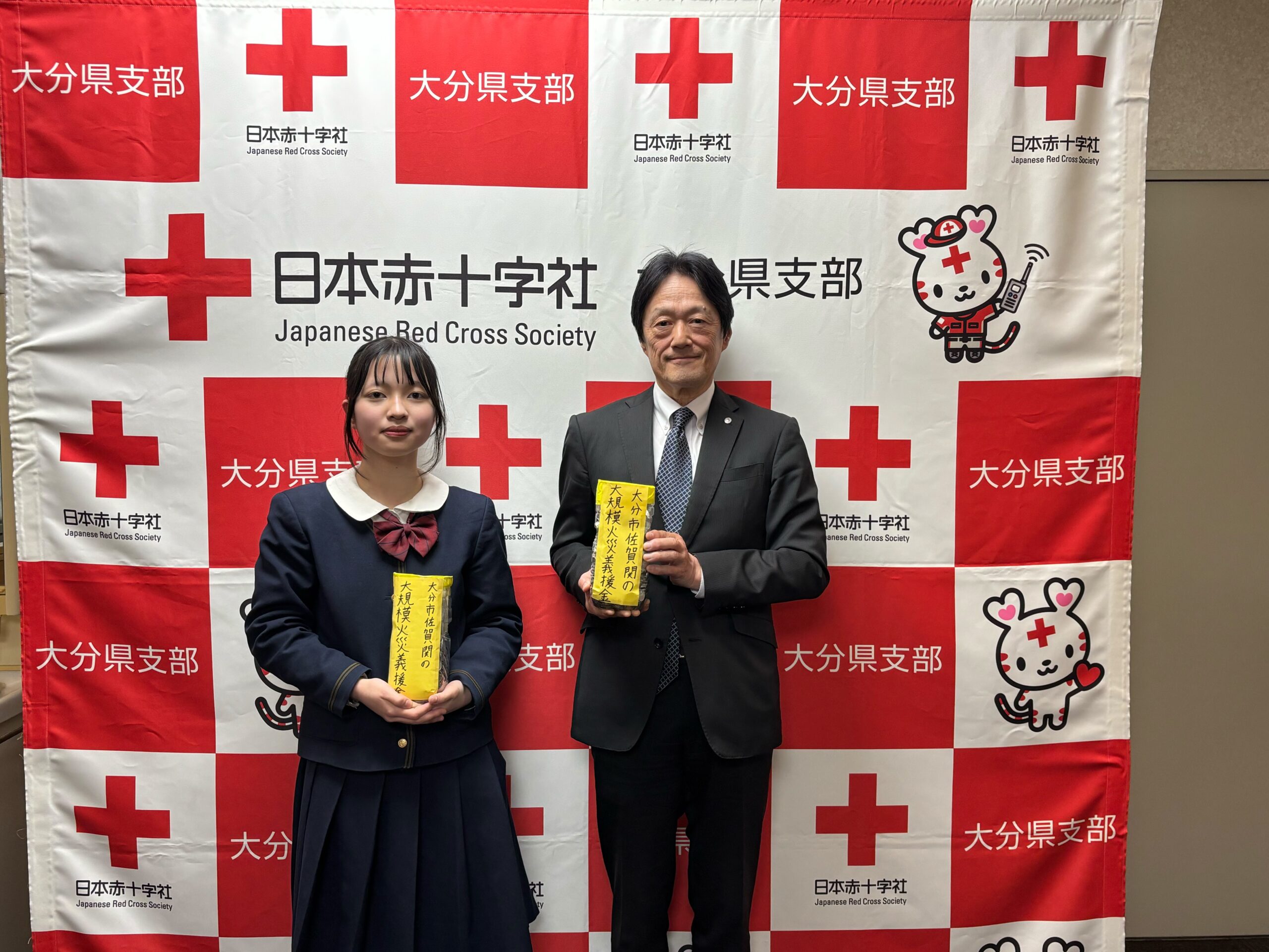大分市佐賀関で発生した大規模火災からの復興を支援するために、自分たちに何かできることはないかと考え、ボランティア委員会が中心となって12月16日~18日の3日間、募金活動を行いました。